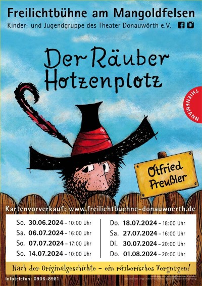 Die Insezenierung "DerRäuber Hotzenplotz" unserer Freilichtbühne am Mangoldfelsen wurde vom Verband Bayerischer Amateurtheater als bayernweit beste Inszenierung in den Jahren 2023, 2024 und 2025 mit dem 1. Platz, dem "Larifari" ausgezeichnet!